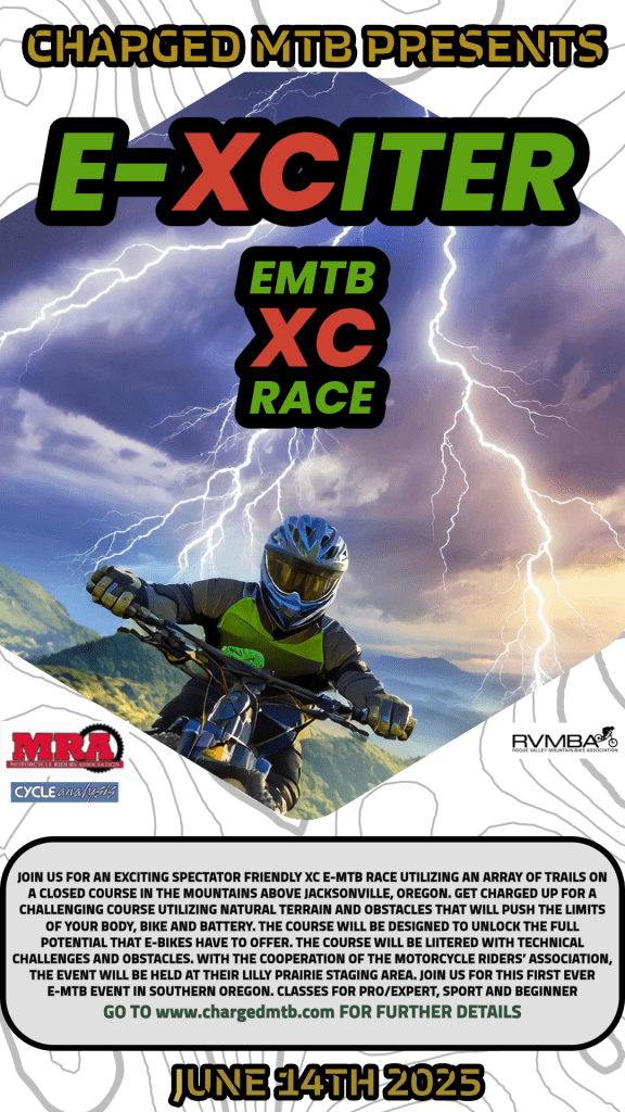 CHARGE YOUR BATTERIES AND GET READY TO PUSH YOUR BIKE AND BODY TO THEIR LIMITS IN THE MOUNTAINS ABOVE JACKSONVILLE, OREGON. THOSE OF YOU THAT RIDE E BIKES ARE FULLY AWARE THAT RIDING THESE INCREDIBLE MACHINES REQUIRES JUST AS MUCH, IF NOT MORE, FITNESS AND SKILL AS RIDING A REGULAR BIKE.